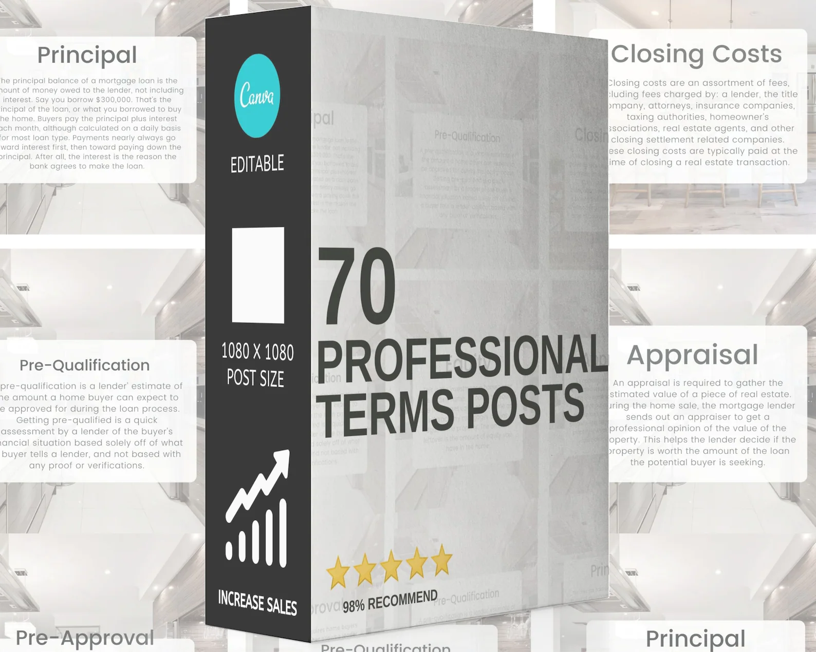 This bundle covers absolutely everything. The ‘Just Listed’ and ‘Just Sold’ templates are my favorites. 5 stars without a doubt.